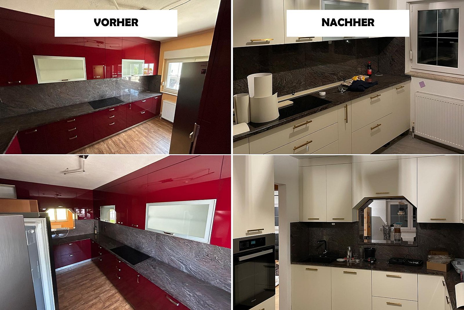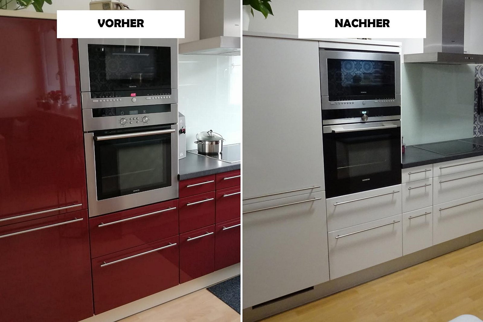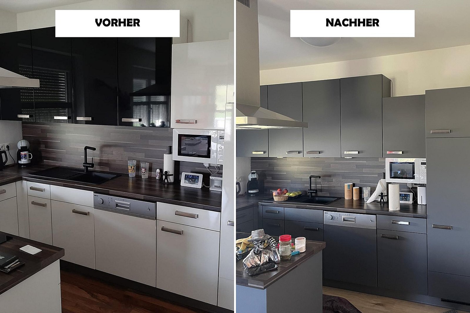 Fotos von Küchen, welche wir modernisiert haben. Teilweise war die Werksfolie defekt und oftmals möchte man einfach eine neue Optik!