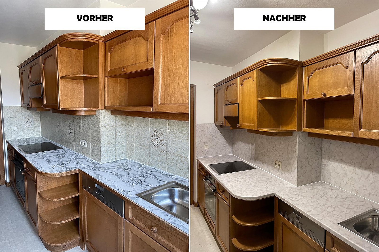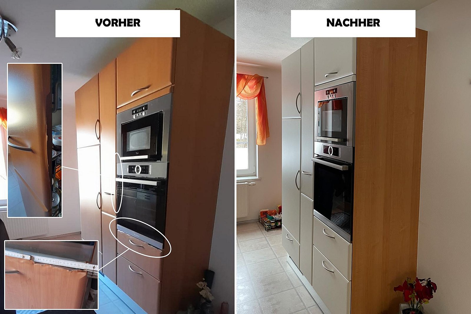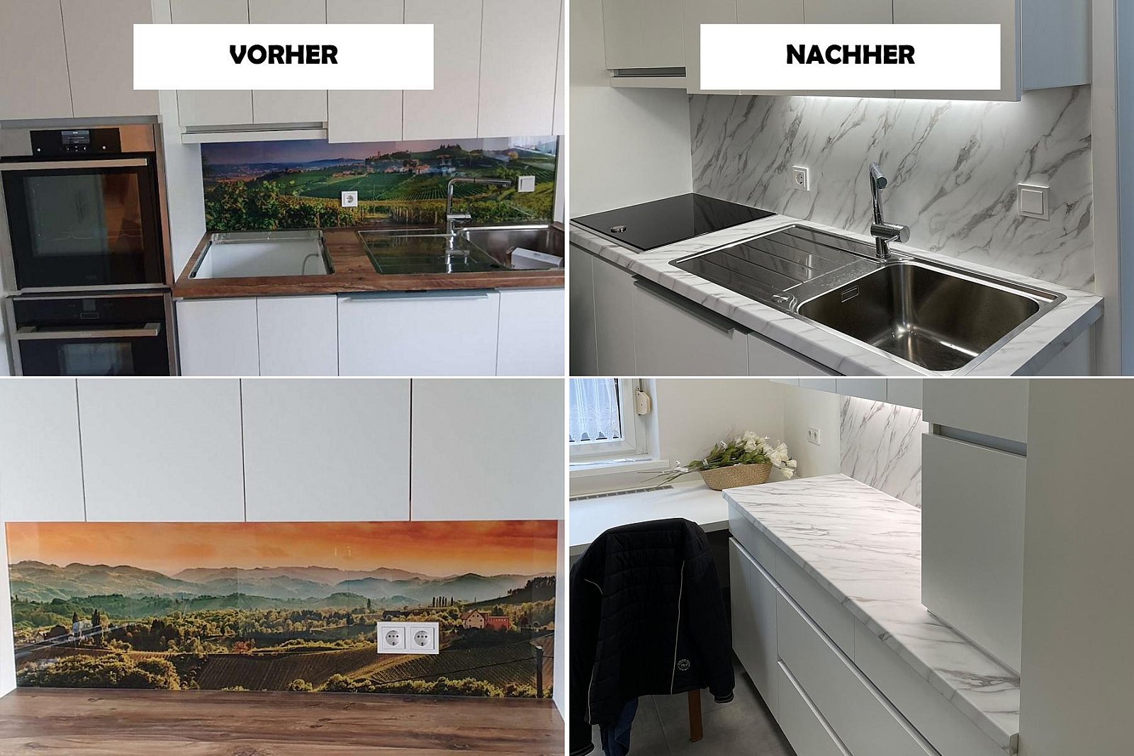 Fotos von Küchen, welche wir modernisiert haben. Teilweise war die Werksfolie defekt und oftmals möchte man einfach eine neue Optik!